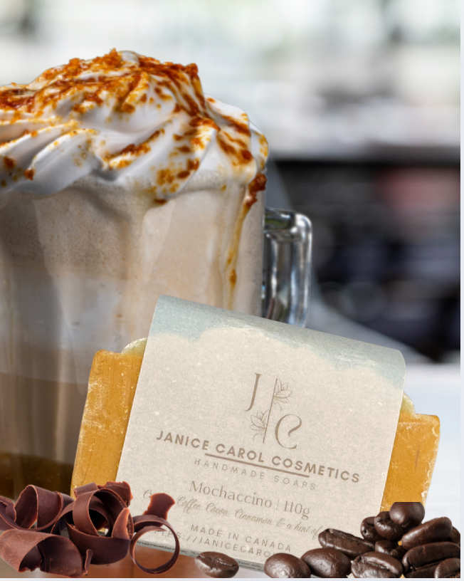 Experience the richness of a latte with hints of chocolate, orange and spiced with cinnamon. Â Warm your senses with these delicious scents while nourishing your skin with creamy moisture. Ingredients: Saponified olive oil, cinnamon, cassia and sweet orange essential oils, fragrance oil. Made in Canada
